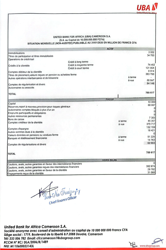 BILAN AU 31/01/2026